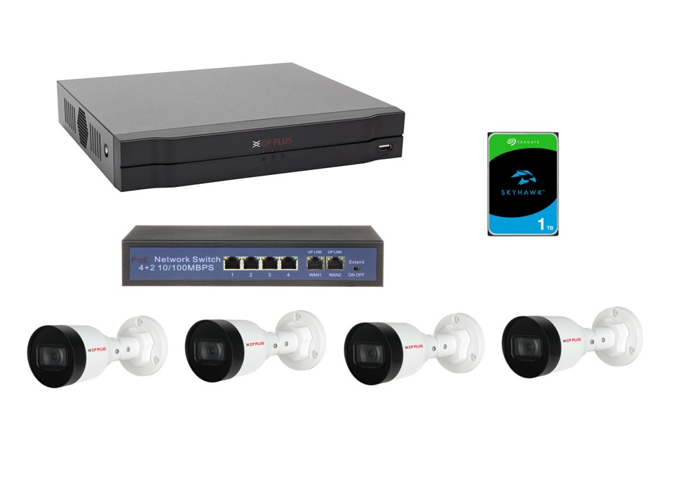 Tento kamerový set je sestaven z kvalitních značkových produktů CP PLUS a je vhodný pro nepřetržitý monitoring vybraných prostor, včetně možnosti přehrávání záznamu, samozřejmě i vzdáleně přes mobilní aplikaci či z počítače.